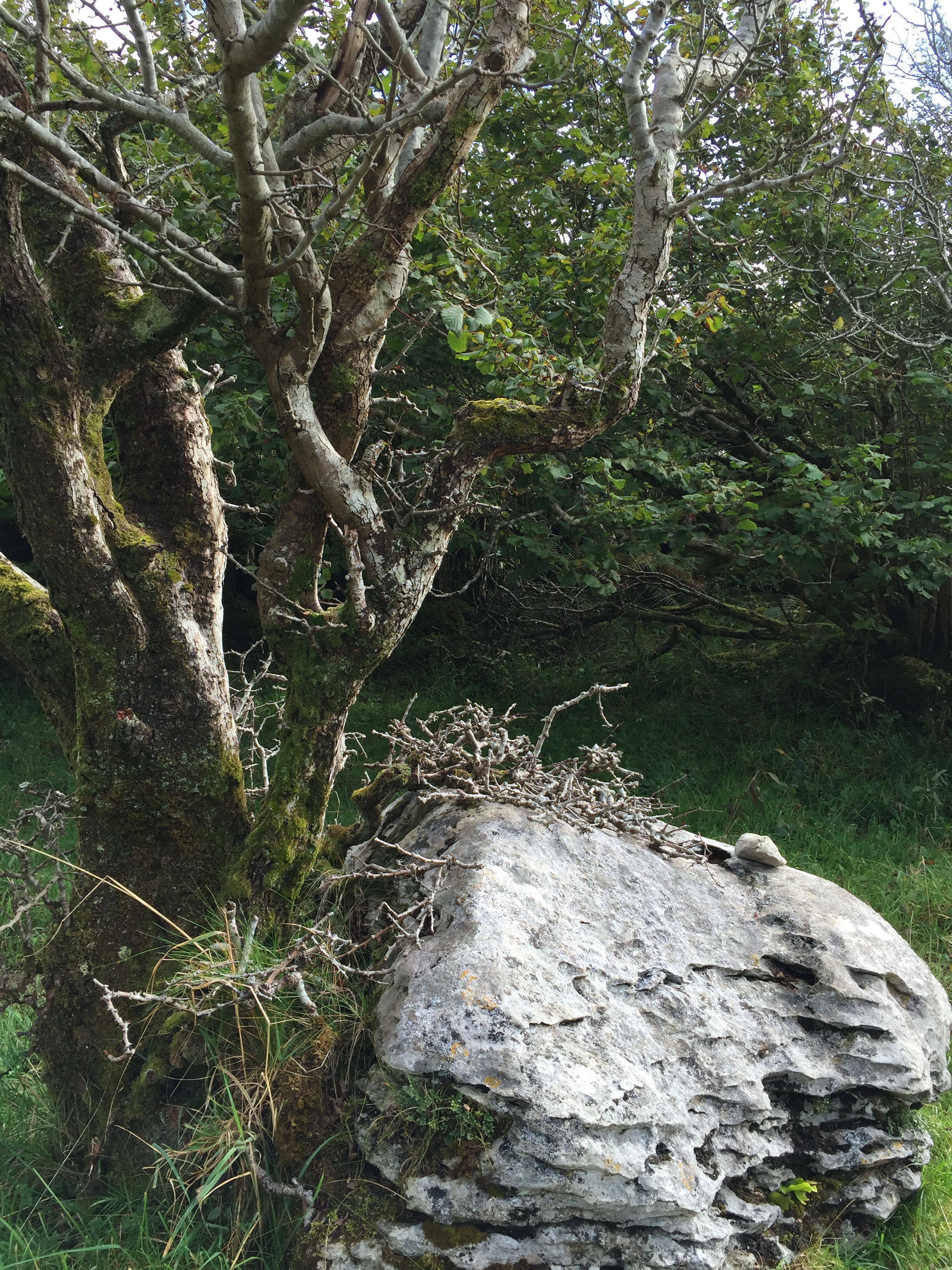 We started with a short hike to St Cronan’s hermitage and holy well. Located beneath the towering behemoth of Eagles Rock, the trail led us through a variety of Burren terrain and fauna, including dense hazel forests and grykes (fissures) filled with wildflowers and ferns.
